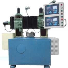 产品特点: 1.机械部分采用优质材料铸造,具有足够的强度; 2.立式液压内(外)圆夹料,操作简单、方便; 3.配置变频器,实现无级调速,提高产品质量; 4.采用第三代德亚CNC数控系统,操作简便、精度高; 5.双刀架采用燕尾槽导轨,步进电机驱动滚珠丝杆,进刀精准、灵活方便、生产效率高; 6.导轨、丝杆部配置自动润滑加油系统,具有运动灵活、减少热变形、精度稳定的特点; 7.变速箱齿轮全部高频淬火、磨齿。 8.设备导轨、拖板等大件均采用高强度铸铁材料铸造,保证机床整体的高刚性、高稳定性、机械强度。 适用产品规格(单位:mm)(尺寸可定制) ∅600、∅700、∅800、∅900、∅1000