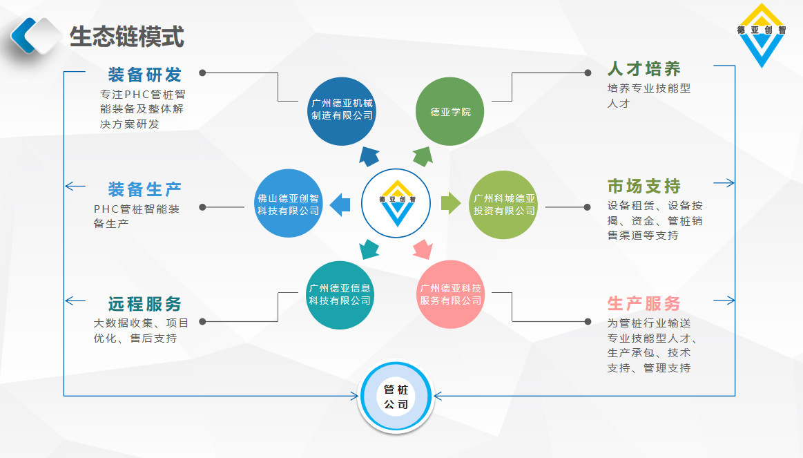 根据行业面临的痛点,雷总还介绍了德亚创智为行业提供管桩智能生产设备、专业技术人才、大数据的远程服务,同时也为行业提供市场与资金的支持等一揽子服务。