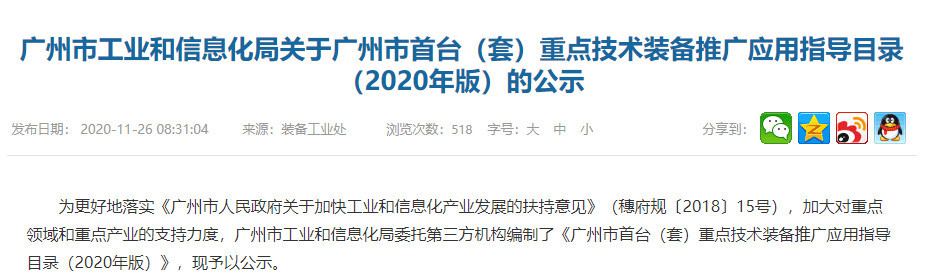 为加快提升制造业自主创新能力,培育以创新驱动为核心的装备制造业新优势,2020年由广州市工业和信息化局组织开展的《广州市首台(套)重点技术装备推广应用指导目录(2020年版)》项目已公示,九游(中国)“预应力混凝土智能生产线”成功入围。