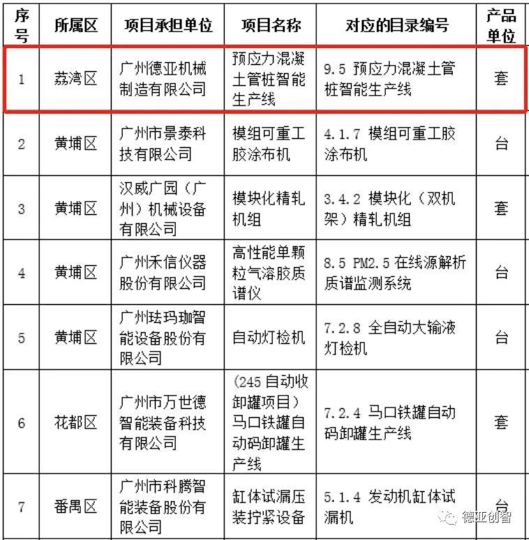 2022年,由广州市工业和信息化局主办,根据《广州市工业和信息化局关于发布2022年广州市促进工业和信息化产业高质量发展资金项目入库申报指南的通知》(穗工信函〔2022〕15号)要求,通过层层评选,紧张角逐,优中选优,《2022年广州市促进工业和信息化产业高质量发展资金首台(套)重点技术装备推广奖励》方向项目评审结果已揭晓。共10家企业的创新项目入围,九游(中国)预应力混凝土管桩智能生产线成功入选榜单。