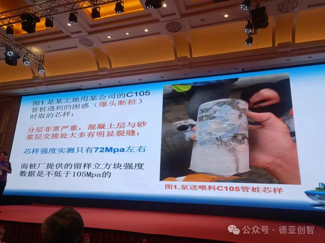 姜正平教授幽默又犀利地指出PHC管桩制造存在的问题,干货满满。对泵送喂料工艺实物钻心取样深入浅出地分析混凝土分层问题,对学术执着、认真负责的态度让人尊敬。