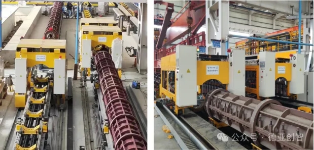 全自动合/拆模机具备高精度定位和控制系统,有效识别管模螺距精准对位,并采用16支风炮同时作业的生产工艺,降低人工作业时因管桩变形,导致打不紧漏浆的问题。