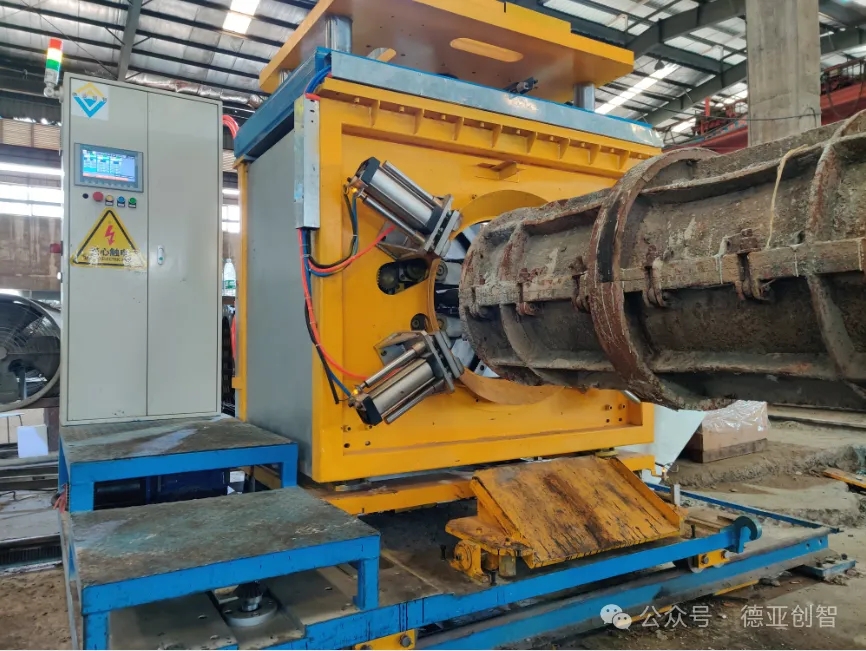 全自动拆头尾板机配置先进的控制系统和传感器技术,实现不同规格管桩的自动识别,自动调整作业位置、自动转换产品型号。